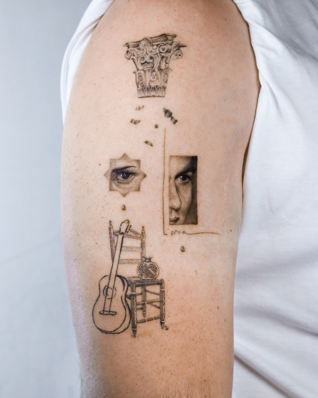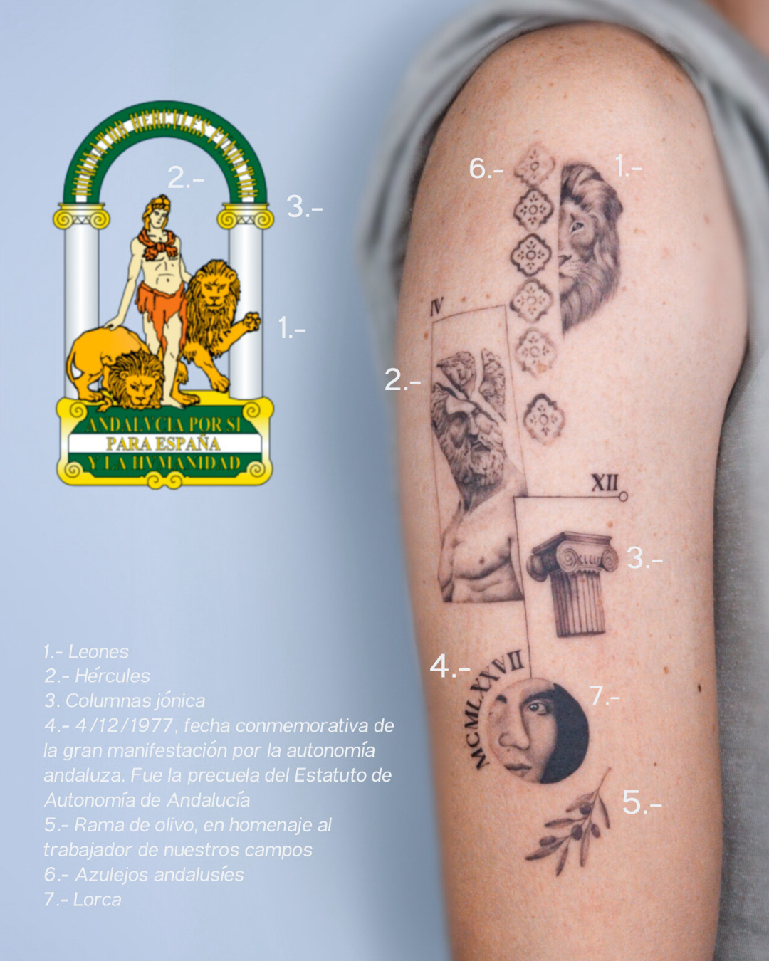 Cada trazo refleja identidad, raíces y una conexión profunda con la belleza del legado andaluz. Un tatuaje que no solo adorna la piel, sino que celebra una forma de vida.