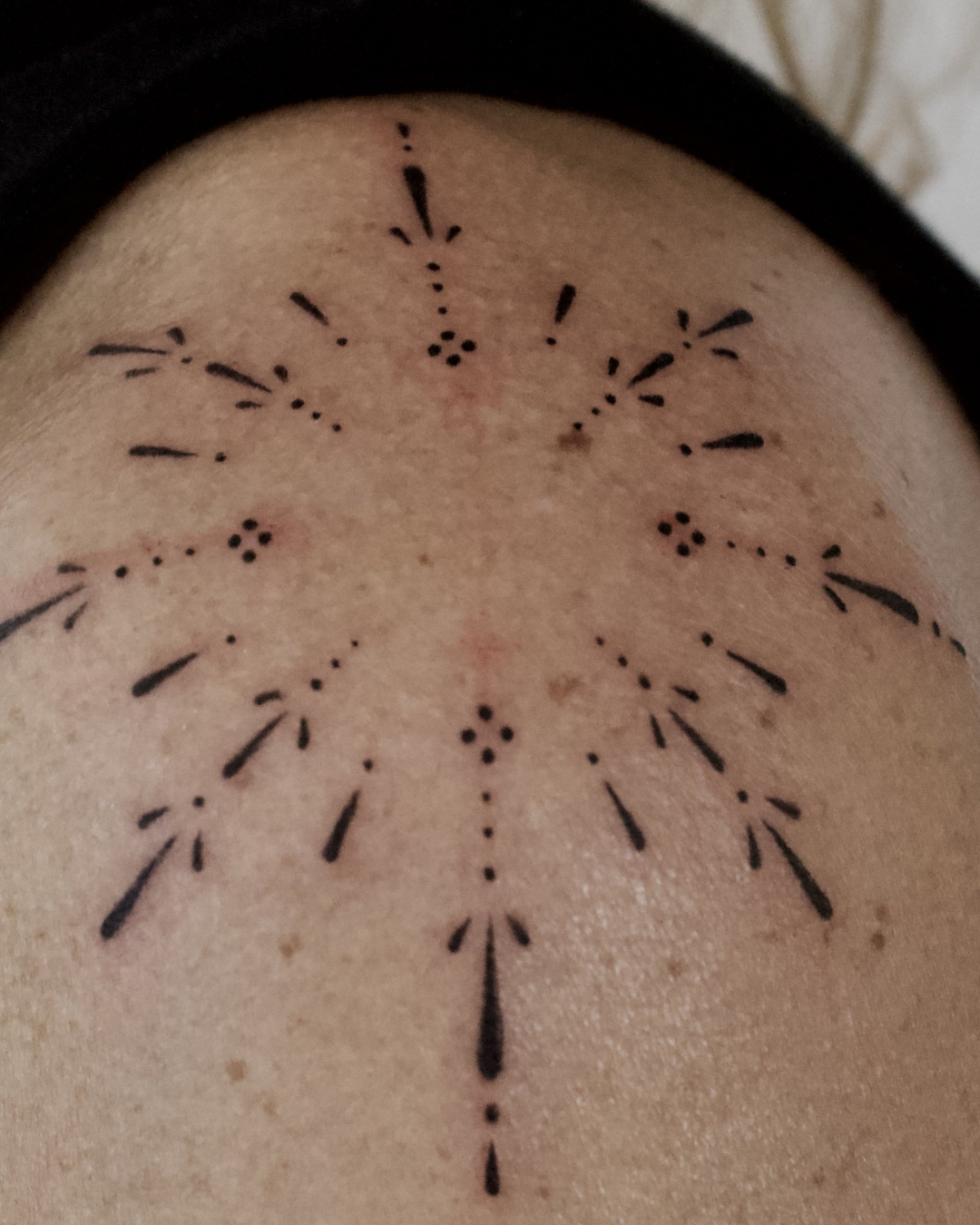 En sus manos, el tatuaje floral se convierte en un puente entre lo ornamental y lo ilustrativo: líneas que narran, flores que fluyen, formas que abrazan el cuerpo con armonía y carácter. Su estilo combina la precisión de la ilustración con la elegancia del ornamento, transformando la piel en un lienzo donde la feminidad, la fuerza y la sutileza dialogan en equilibrio. Cada pieza es una historia, un símbolo, una extensión del alma.